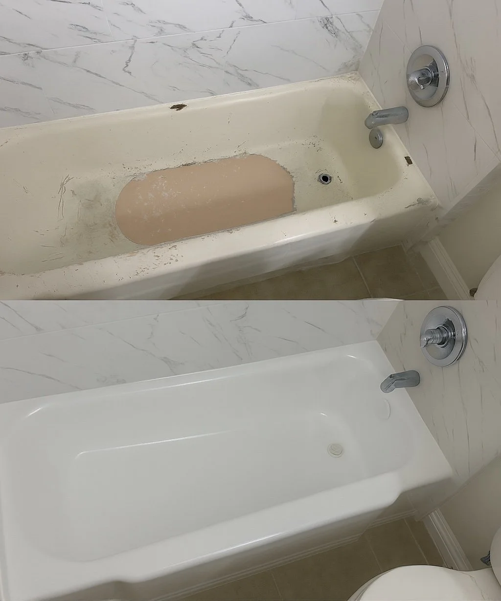 From rusted and worn to spotless and glossy — professional bathtub refinishing transformation.